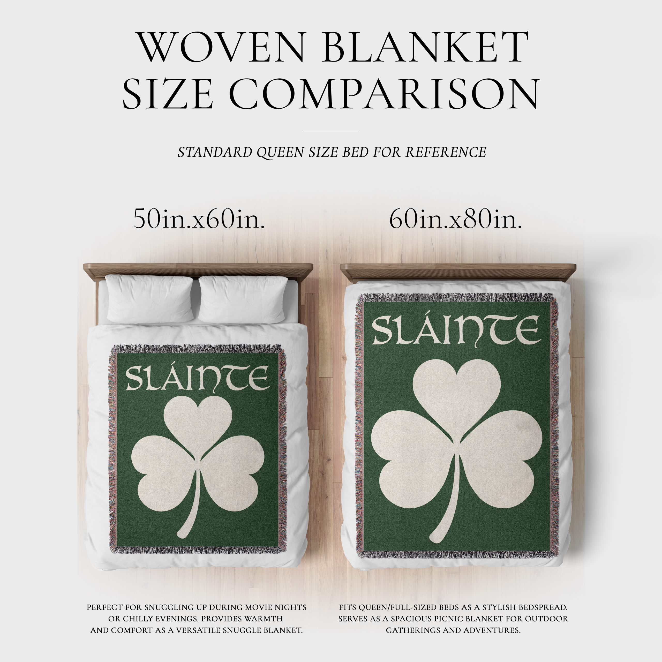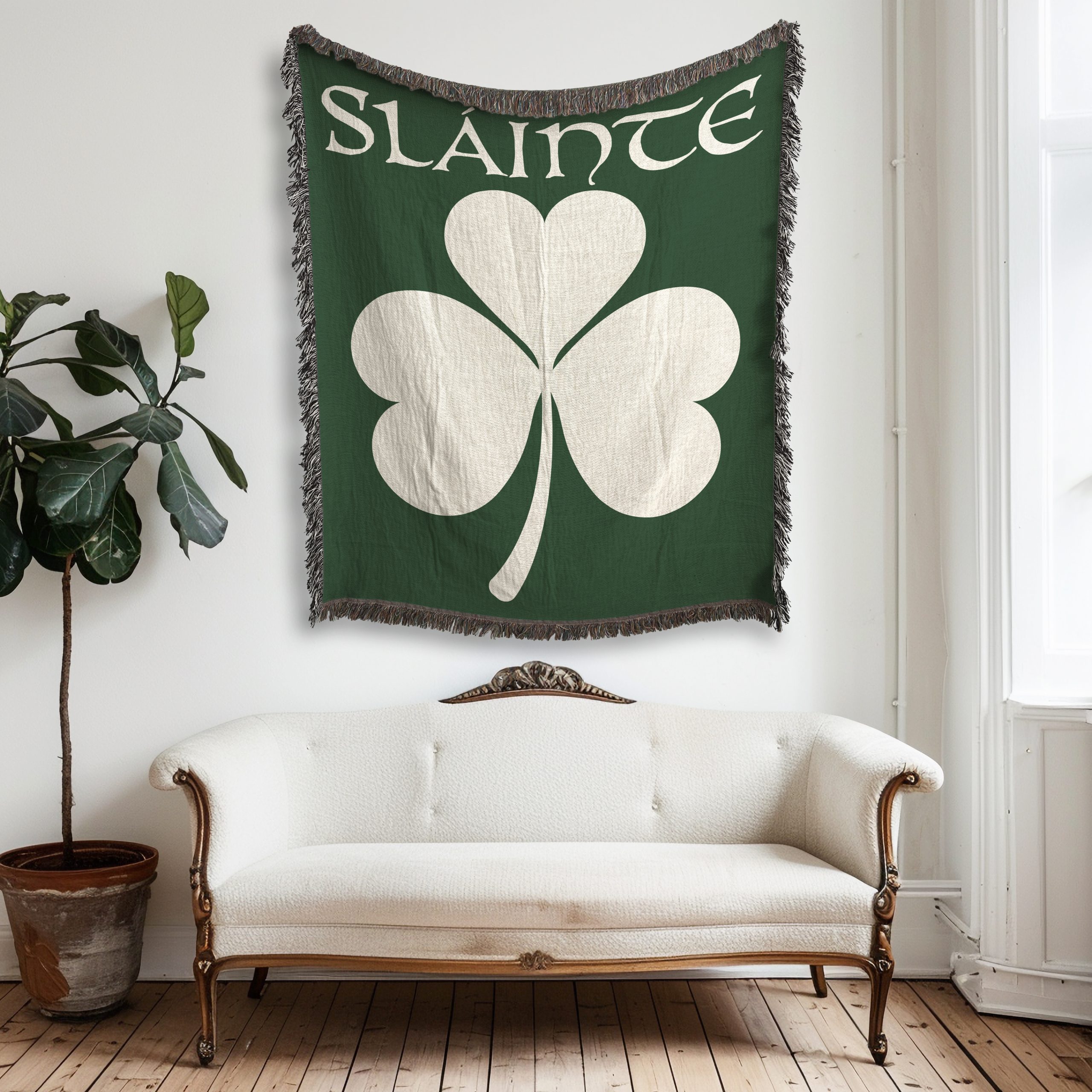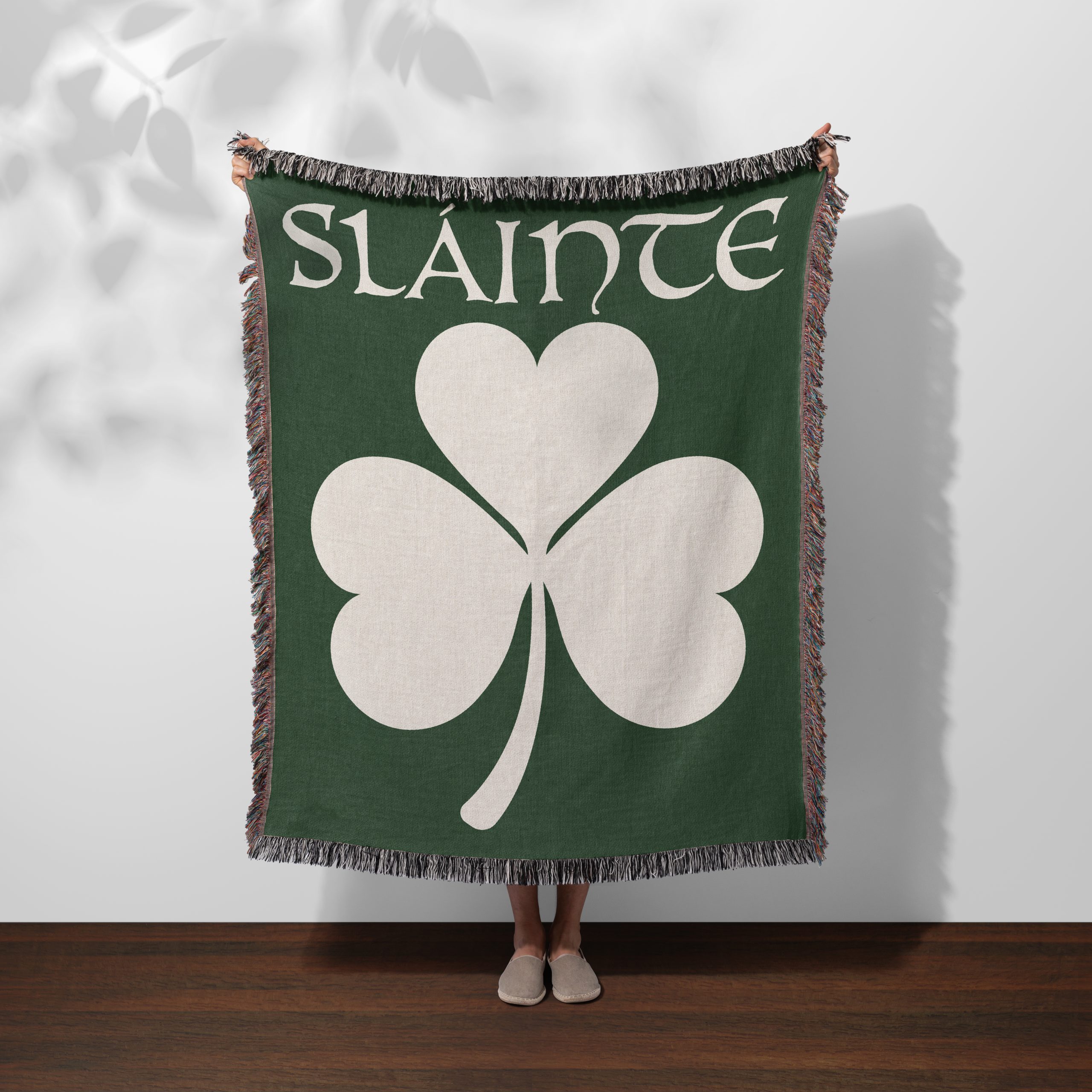 Featuring a shamrock and the word “Sláinte”— an Irish toast meaning “health”— this cozy blanket is perfect for chilly evenings or as a thoughtful gift for someone special. Whether it’s to celebrate your heritage, drape it over yourself for a quick nap, hang it as a tapestry, or bring it along for a beach day or picnic, this blanket will add a touch of cozy wherever you go. Made from 100% pure cotton, it’s soft, luxurious, and endlessly versatile.